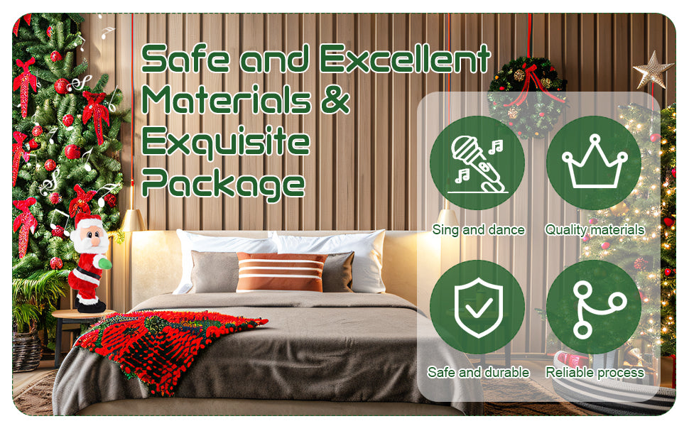 • 【Safe and Excellent Materials & Exquisite Package】Stuffed Santa Claus uses safe and high-quality materials and reliable construction process,ensuring that wiggles animated santa toy are both safe and durable. At the same time,Electric Dancing Santa package comes with a beautiful gift box,making your Christmas more interesting as the Christmas gift.